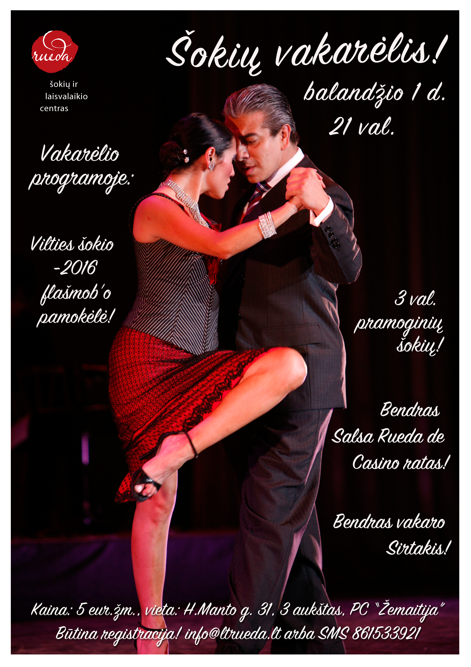 Nepraleiskite progos pasimėgauti 3 valandomis nepertraukiamų pramoginių šokių, išmokti artėjančio „Vilties šokio 2016“ flašmob’o žingsnelius, linksmai pasišokti bendrame Salsa rueda de casino rate ir ir vakarą užbaigti su nepakartojamu graikišku Sirtakiu.