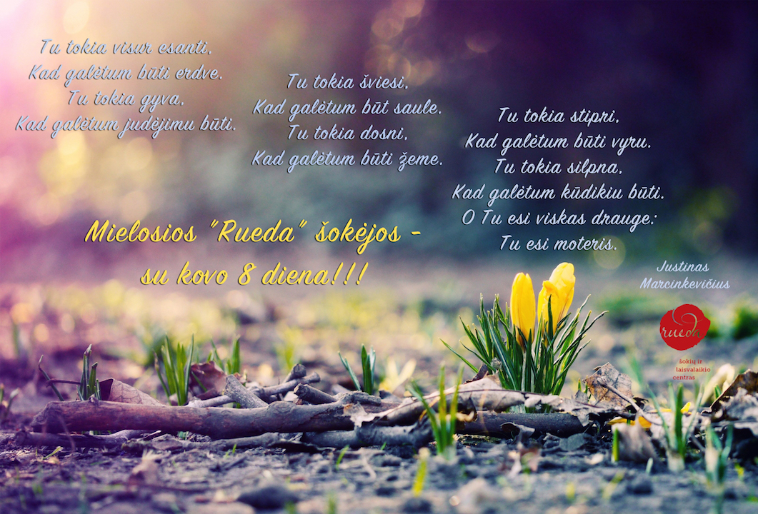 Tu tokia visur esanti, kad galėtum būti erdve. Tu tokia gyva, kad galėtum judėjimu būti. Tu tokia šviesi, kad galėtum būt saule. Tu tokia dosni, kad galėtum būti žeme. Tu tokia stipri, kad galėtum būti vyru. Tu tokia silpna, kad galėtum kūdikiu būti. Tu esi viskas drauge: Tu esi moteris. ~ Justinas Marcinkevičius